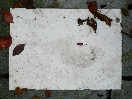 Pappírinn veðraðist, var étinn af skordýrum og eyddist svo smátt og smátt á 360 dögum. Hallgímur í pappírsformi varð smátt og smátt hluti af fjölskyldulífinu í Kolamannastræti 79. Öðru hverju þegar lauf og óhreinindi huldu Hallgrím tókum við hann inn í hlýjuna og böðuðum hann í eldhúsvaskinum, hlúðum svolítið að honum og hægðum þannig á rotnunarferlinu. Svo var hann settur á sinn stað aftur. Ég myndaði ferlið og aðra “atburði” í garðinum, vöxt og hrörnun, og setti saman í verk. Alls urðu til 80 ljósmyndir með trúararlegum og tilvistarlegum vísunum.